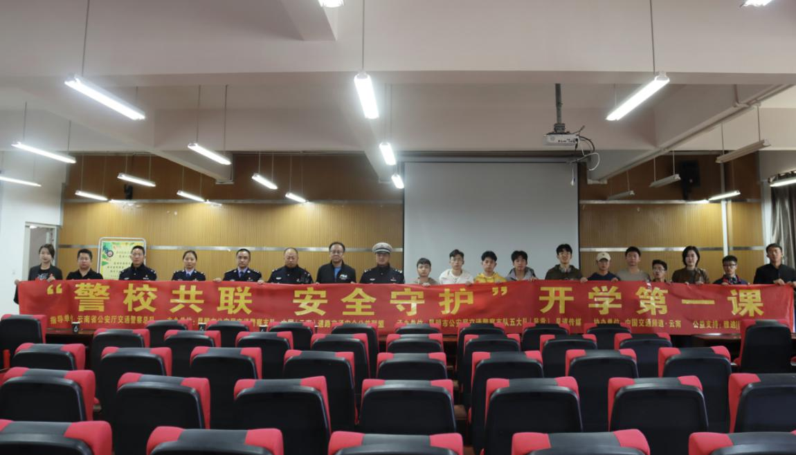 于交通楼A402室举办警校共联,安全守护“开学第一课”云南交通安全宣传讲座。昆明市交警五大队副大队长周小平、昆明市交警五大队中队长皮序东、独播库