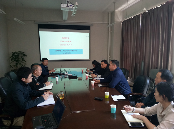 负责人向杨林晖一行介绍了学校及学院发展情况,重点就学院物流学科在服务云南省面向南亚东南亚辐射中心建设、助力精准脱贫、物流行业与企业发展战略、行业人才培养等方面情况进行了介绍。杨林晖总经理在听取汇报后表示,现代物流产业是我省八大重点产业之一,学院物流专业作为省重点建设专业,学科定位起点高,与我省产业发展契合度高,学科专业基础扎实,人才培养效果显著,科学研究成果丰硕,希望加强同学院在政产学研用等方面的深度合作,强化学院对企业可持续发展的智力支撑。