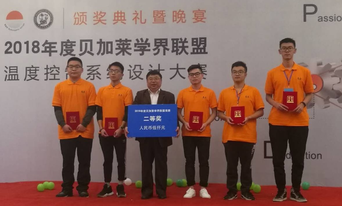 的陈峥教授和申江卫老师。本次比赛的竞赛题目是温度控制系统设计,要求通过控制系统使实物模型的温度能够快速达到指定的温度值,并尽可能的稳定。经过紧张的硬件调试。控制算法测试及专家评审答辩,最终获得全国二等奖和5000元奖金,其中一等奖被山东大学和东华大学获得。在比赛过程中,独播库