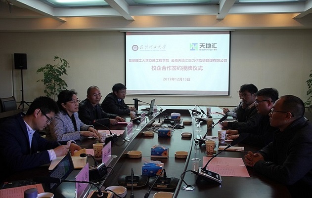 党委马旭东书记、上海天地汇供应链管理有限公司集团人事总监徐水平,云南天地汇巨力供应链管理有限公司昆明总经理徐江、学院及企业主要领导、物流工程系教师、研究生和本科生代表出席了签约授牌仪式。