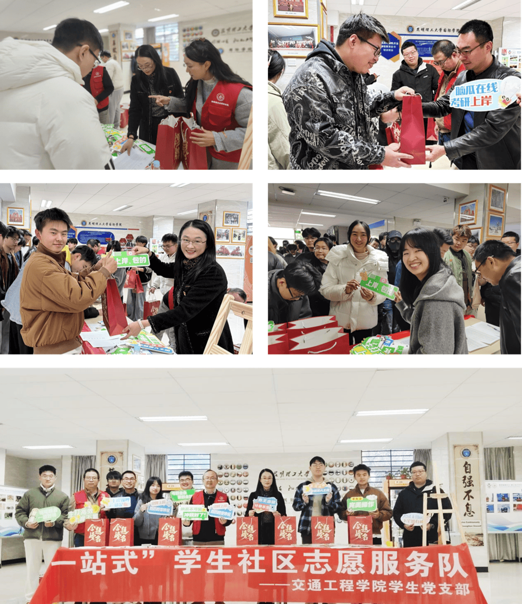 在恒园3栋宿舍大厅举办考研送温暖活动。学院党委副书记赵佳及辅导员、班主任代表共同为2026届考研学子送上定制版“考研加油福袋”,以暖心行动助力学子冲刺备考。
