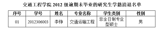根据教育部第41号令《普通高等学校学生管理规定》及《独播库 研究生学籍管理实施细则(2020年修订)》(昆理工大校校发[2021]1号)文的规定,现独播库 对2012级逾期未毕业的1名研究生进行学籍清退。