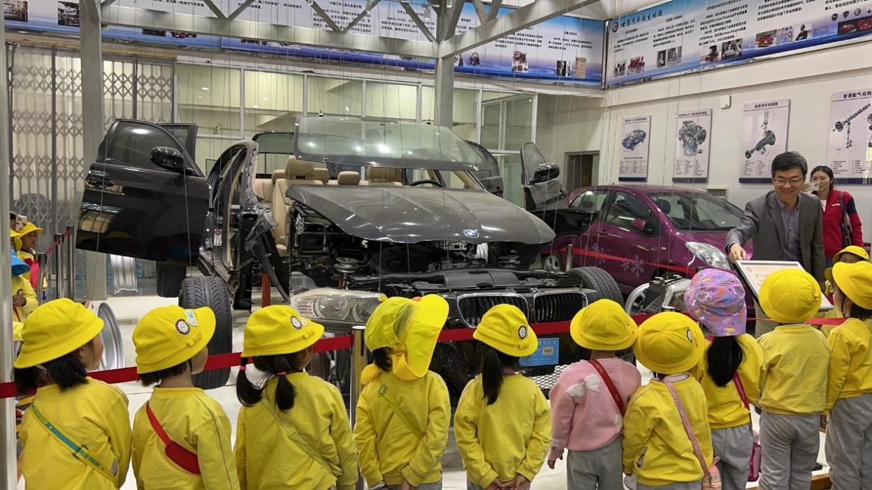 活动现场杨秀建教授带领小朋友们参观了交通学院汽车构造室,对汽车构造进行了详细的讲解,让小朋友们认识了汽车零部件,学院青年志愿者们带小朋友们了解了汽车发展过程,帮助小朋友们了解汽车,认识汽车,促进儿童科普教育。