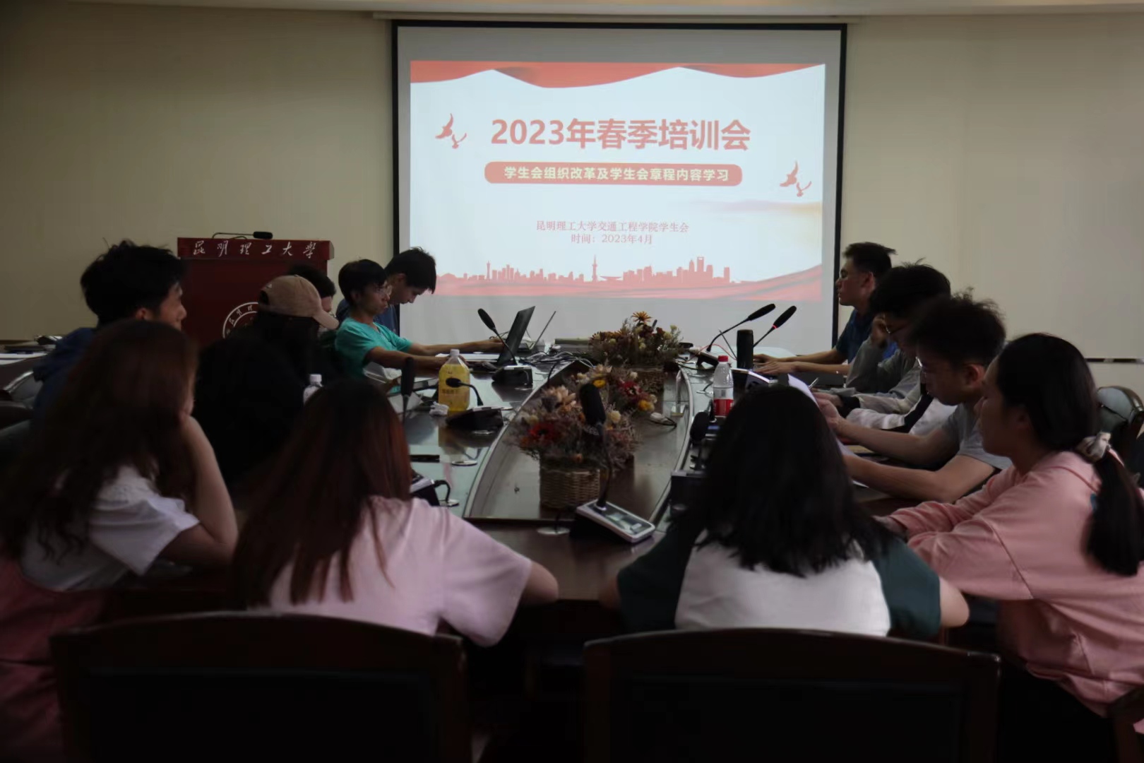 在交通楼A308会议室举办2023年第二次学生会人员工作培训会议。本次会议由交通学院团委书记赵云瑶主持,学院学生会、研究生会负责人参与会议。