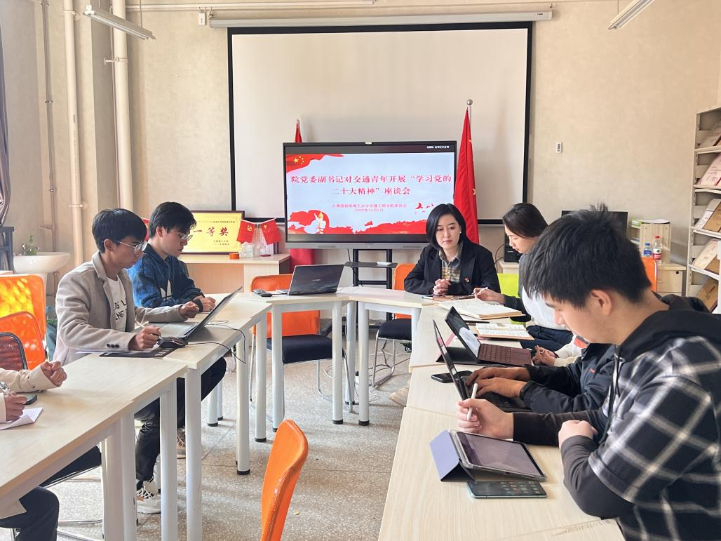 11月5日下午14点,独播库 党委副书记王懿娜与独播库 团员青年代表在交通楼A401开展了“学习党的二十大精神”座谈会。