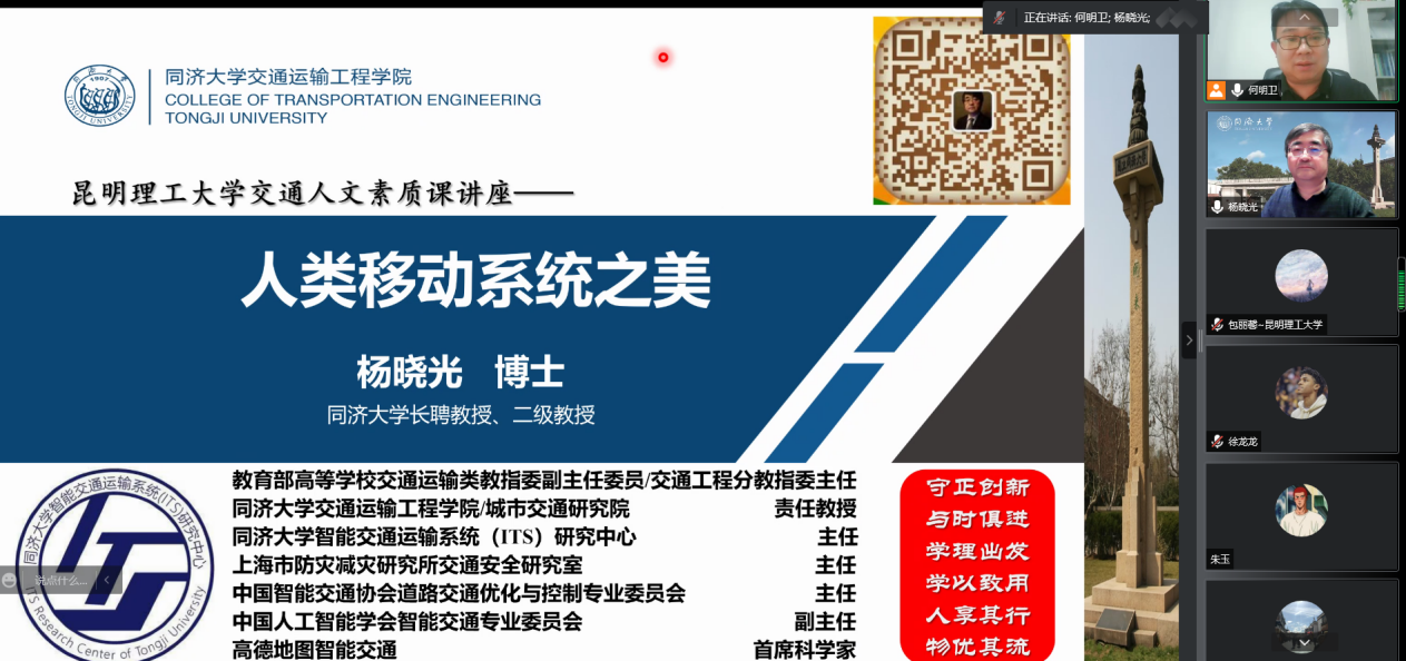 邀请,同济大学杨晓光教授为交通学院全院师生线上讲授了主题为“人类移动系统之美”的人文素质课程讲座。学校领导,独播库