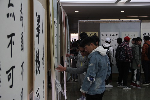 图书馆二楼参加了由共青团举办的“习语金句 百校千言——当代书法名家进高校翰墨巡展”。