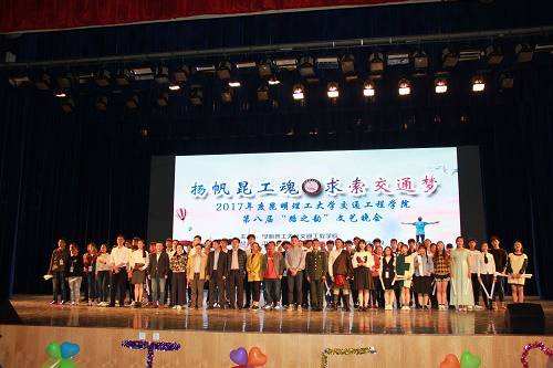 此次晚会由歌舞、相声、小品等十个节目类型组成,晚会的第一个节目是情景舞蹈《交通梦》,演员们热情奔放的表演迅速将大家带入晚会的节奏。接下来是由交通院内燃机民谣乐队带来的表演《平凡之路》,他们的精彩表演引发了台下阵阵欢呼。随后是由交通院国际班同学带来的诗歌朗诵《生如夏花》。之后平安产险云南分公司的员工给大家带来的小品《查勘》深得观众喜爱,晚会随之被推向了高潮。除此之外,由学院两位女生带来的相声——《考上大学后》更是引发台下阵阵欢笑声,观众席掌声连连。在这些精彩的表演之后是激动人心的抽奖环节,由副院长雷基林教授为我们抽取二、三等奖的获得者。抽奖之后,我们欣赏了小提琴、钢琴、古筝等乐器带来的合奏《卷珠帘》,歌曲串烧《流砂?年华》。接着街舞社的《kissing strangers》,演员们激情澎湃的表演使现场气氛高涨。还有搞笑的小品《两只狗的生活意见》。然后由平安产险云南分公司的经理为我们抽取了晚会终极大奖一等奖的获得者并发言向同学们传授经验,谈感想。最后学院的草原歌神欧觉带来的藏语独唱《欢聚吉祥》,让我们领略到了藏族人民的欢乐,同时,晚会所有节目表演完毕,主持人宣布此次文艺晚会圆满结束并邀请嘉宾和领导上台与演职人员合影留恋。至此,独播库