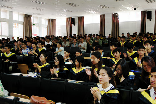典礼开始,在主持人宣布2015届毕业生毕业典礼开始并介绍到会人员之后,首先院长何民教授致辞,表达了对毕业生的殷切期望和美好祝福,并勉励大家为了以后的幸福生活,要在工作中脚踏实地、坚持不懈、不断努力,逐步提高自己能力。同学们对院长何民饱含深情的话语报以热烈的掌声。接着教师代表王贵勇老师作发言,表示同学们大学四年的列车已到达终点站,但人生的列车才刚开始,想要到达远方要带上诚信和自信。之后,优秀毕业生代表周涛分享了自己大学四年的感受,也抒发了自己对母校的不舍。