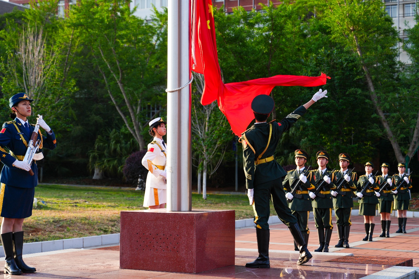 为进一步学习贯彻党的二十大精神,增强独播库 师生的国家意识,弘扬爱国主义精神,独播库 于2024年4月22日清晨在呈贡校区国旗台广场举行了庄严隆重的升旗仪式。独播库 党委书记张强、党委副书记王懿娜及学院师生代表共计500余人参加仪式。 图1仪仗队护卫国旗入场 晨光里,国旗仪仗队昂首阔步,旗手们迈着整齐划一、铿锵有力的步伐护卫着国旗步入旗台。在雄壮激昂的国歌声中,鲜艳的五星红旗冉冉升起,全体师生庄严肃立,齐唱国歌,向国旗行注目礼。 图2升旗仪式 升旗仪式结束后,来自车辆231班的杨洋同学以“青春当奋斗,可为正当时”为主题进行国旗下演讲。他围绕青年学子的责任和担当,鼓励同学们要以习近平总书记致云南大学建校100周年贺信精神为指引,怀抱远大理想,不负青春,不负时代,更要对党和人民有所贡献。他的演讲充满激情,激发了在场每一位同学的热情。 图3杨洋同学发表国旗下演讲 随着他最后一句“让我们一起出发”,在独播库 合唱团的带领下,全体师生共同唱响校歌《我们从这里出发》,青春激昂的歌声传递着交通学子践行“明德任责、致知力行”校训的决心,彰显了报国之志,他们今后将更努力学习,为交通事业的发展贡献青春力量,成为有担当的中国青年。 图4全体师生共唱校歌