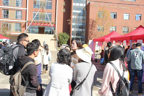此次招聘会分为上、下午两个时段。上午时段,用人单位现场进行宣传和招聘,并和毕业生进行简单的沟通交流;下午时段,用人单位在交通学院的教室里进行详细的企业宣讲,与有意向同学进行深度沟通,完成笔试、面试等招聘环节。