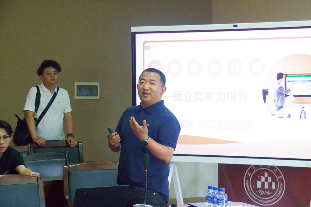 在交通楼A308开展就业竞争力提升专题培训,本次培训邀请到智联招聘昆明分公司城市负责人吕健林先生担任主讲人。
